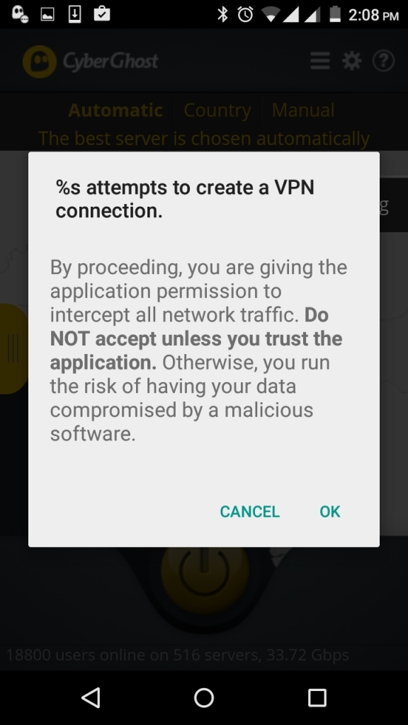 6. Tap the Power button to begin surfing anonymously. Wait till CyberGhost connects successfully